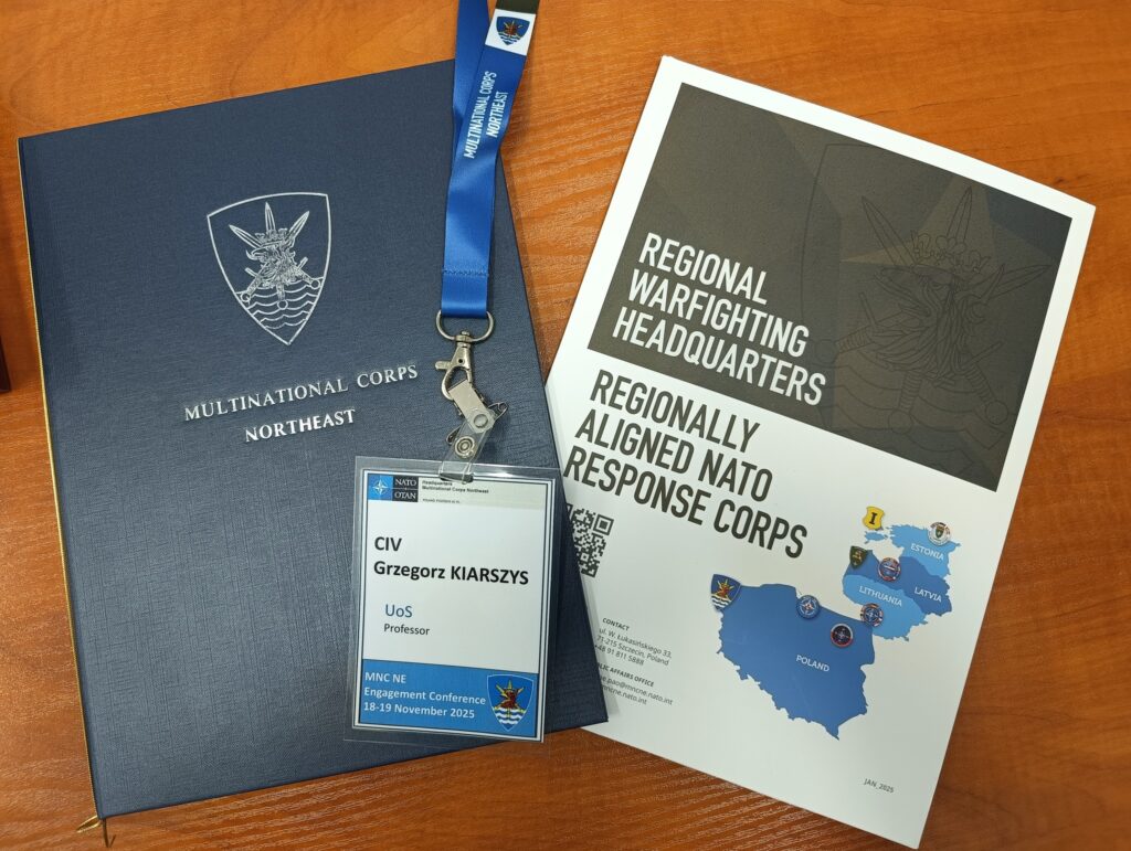 W dniach 18 i 19 listopada 2025 dr hab. Grzegorz Kiarszys, prof. US z Katedry Archeologii Uniwersytetu Szczecińskiego oraz członek Polskiego Komitetu Błędkitnej Tarczy wziął udział w konferencji NATO „Multinational Corps Northeast Engagement Conference, Szczecin 18-20.11.2025”, podczas której przedstawił referat pt. „Protecting Cultural Heritage Endangered by Armed Conflicts: Past Experiences and Contemporary Challenges”. Główną tematyką konferencji były zagadnienia dotyczące szeroko rozumianej współpracy cywilno-wojskowej (CIMIC), a wśród nich poruszano również kwestie związane z ochroną dziedzictwa kulturowego (CPP) podczas trwania konfliktów zbrojnych.